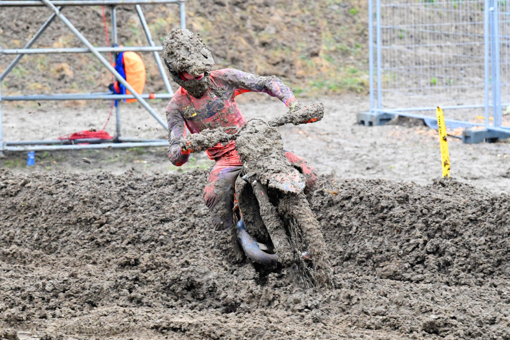 Die EMX125-Kategorie hatte das zweifelhafte Vergnügen, den Renntag bei Enduro-ähnlichen Streckenbedingungen zu eröffnen. Das Schlammrennen gewann der Franzose Liam Bruneau auf KTM. Nachdem dessen Markenkollege Ricardo Bauer aus Österreich den ersten Wertungslauf am Samstag gewonnen hatte und am Sonntag Rang zwei belegte, durfte er zur anschließenden Siegerehrung als Gesamtsieger aufs Podest klettern.